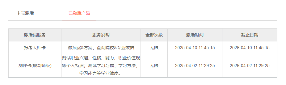 (4)激活成功后,在“已激活产品”页面,可查阅所有已激活的功能和有效期等信息。