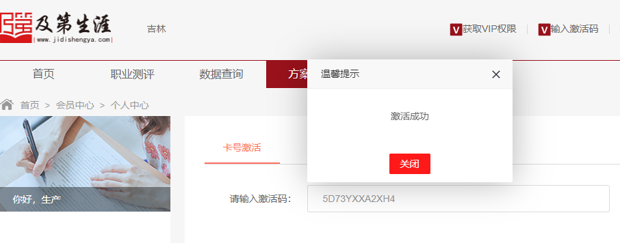 (1)登录网站后,在网页右上方点击“输入激活码”按钮。